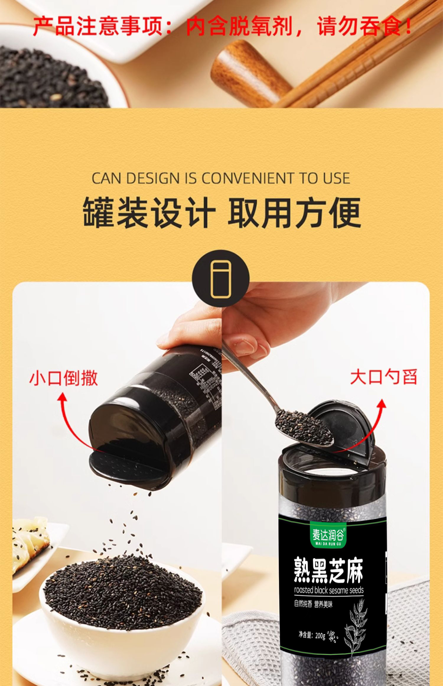 丹江口市麦达润谷熟黑芝麻200g/罐
